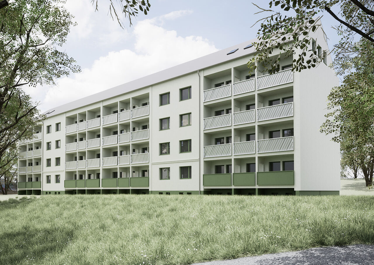 Das Gebäude Lessingstraße 62 - 68 soll in den Jahren 2024-2026 grundhaft saniert und umgestaltet werden. Nach umfangreichen Überlegungen, Recherchen und Sammeln von Ideen sollen in diesem Haus nach dem Vorbild des Modells „Mehrgenerationswohnen“ hochwertig sanierte und individuelle 4-, 3-, 2- und 1-Raum-Wohnungen entstehen. Im Erdgeschoss ist geplant, medizinische und therapeutische Leistungen, wie z.B. Arztpraxen, Physio- und Ergotherapie oder ähnliches anzubieten. Die Wohnungen sollen über einen Fahrstuhl erschlossen und barrierearm ausgestattet werden und sind sowohl für Familien, Senioren oder Singles bestens geeignet. Auch energetisch werden wir das Haus umfangreich ertüchtigen. Im Umfeld sind ebenfalls Maßnahmen zur Verschönerung geplant.