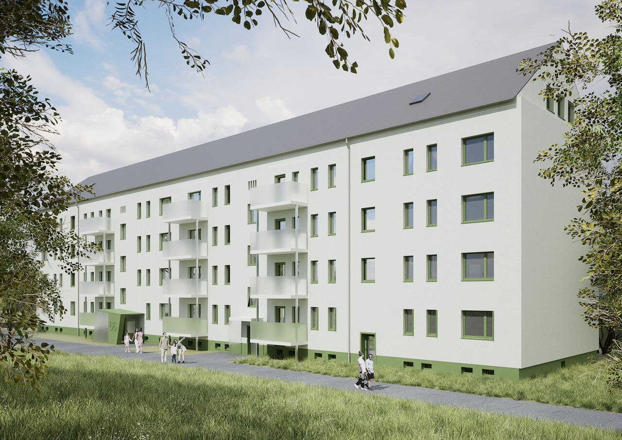Das Gebäude Lessingstraße 62 - 68 soll in den Jahren 2024-2026 grundhaft saniert und umgestaltet werden. Nach umfangreichen Überlegungen, Recherchen und Sammeln von Ideen sollen in diesem Haus nach dem Vorbild des Modells „Mehrgenerationswohnen“ hochwertig sanierte und individuelle 4-, 3-, 2- und 1-Raum-Wohnungen entstehen. Im Erdgeschoss ist geplant, medizinische und therapeutische Leistungen, wie z.B. Arztpraxen, Physio- und Ergotherapie oder ähnliches anzubieten. Die Wohnungen sollen über einen Fahrstuhl erschlossen und barrierearm ausgestattet werden und sind sowohl für Familien, Senioren oder Singles bestens geeignet. Auch energetisch werden wir das Haus umfangreich ertüchtigen. Im Umfeld sind ebenfalls Maßnahmen zur Verschönerung geplant.